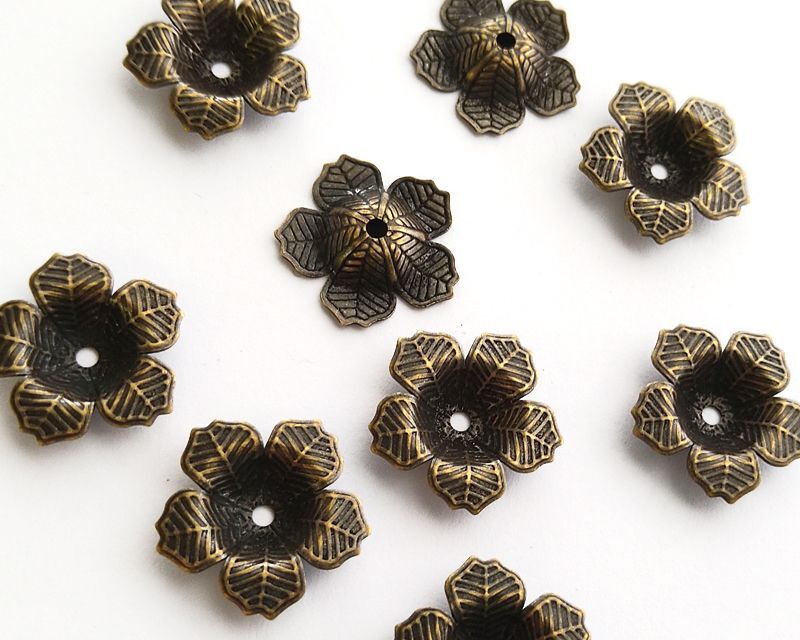 ブラスフラワーパーツ/日本製/金古美/17mm(1個)