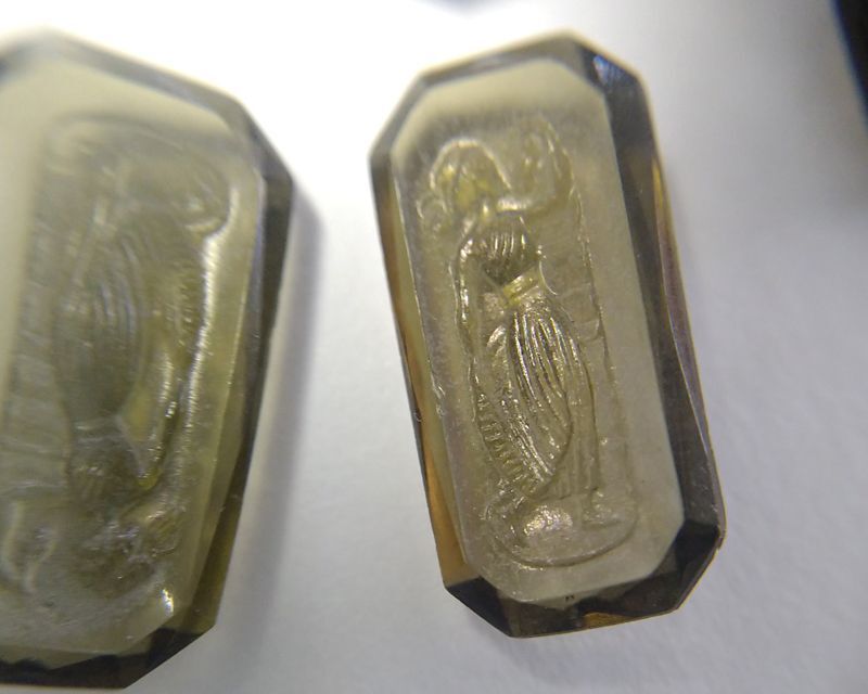 ns219/ヴィンテージ/ドイツ/ガラスストーンレリーフ/オクタゴン/グレイ/約16×8mm(1個)