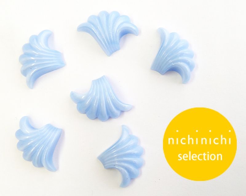 ns254/ヴィンテージ/ドイツ/ガラスカボション/フリル/シルキーライトブルー1個)