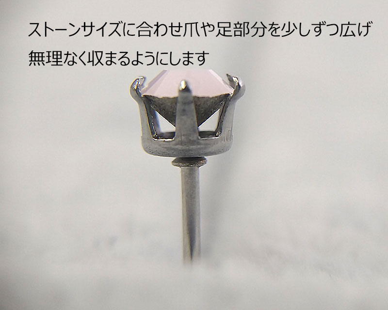 まずはストーンが無理なく入る程度に爪の足部分を少しずつ広げ、