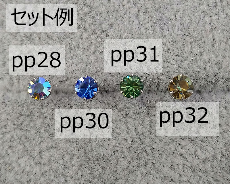 pp28〜pp32(3.5〜4.1mm)程度のストーンをセットできます