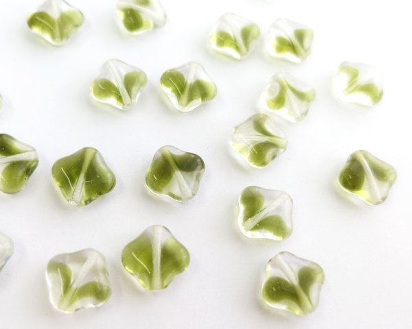 チェコガラスビーズ/フラットスクエア/約12mm/クリア×オリーブ(2個)