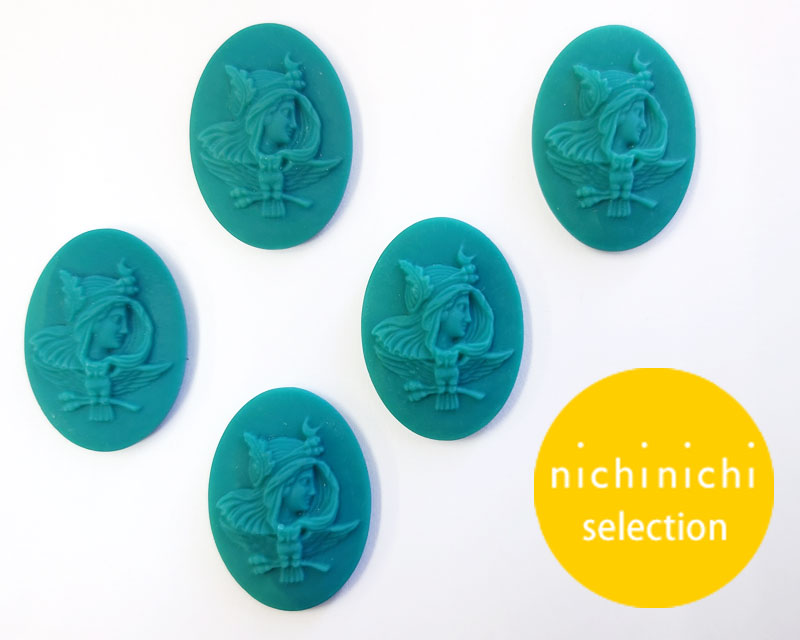ns304/ヴィンテージ/ドイツ/ガラスカメオ/アテナ/オペークブルーグリーン/約30×22mm(1個)
