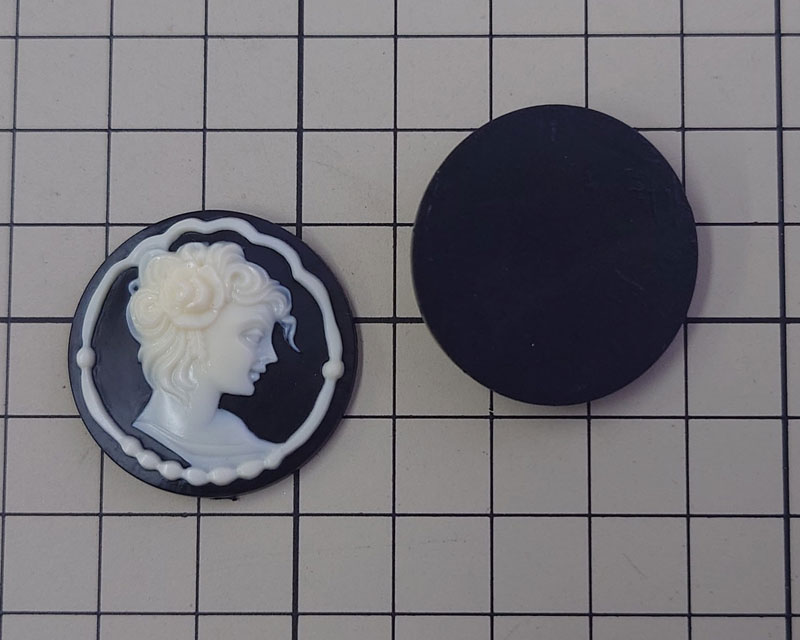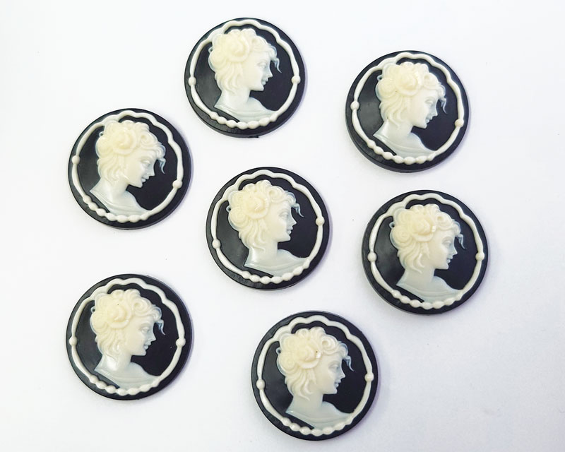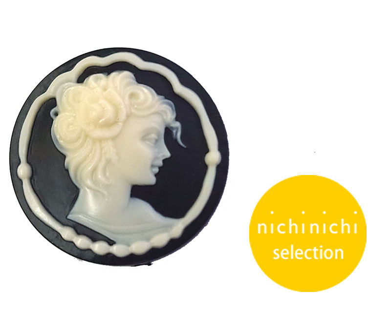 ns317ヴィンテージ/プラスチックカメオ/ラウンドブラック/約30mm/(1個)