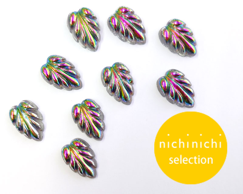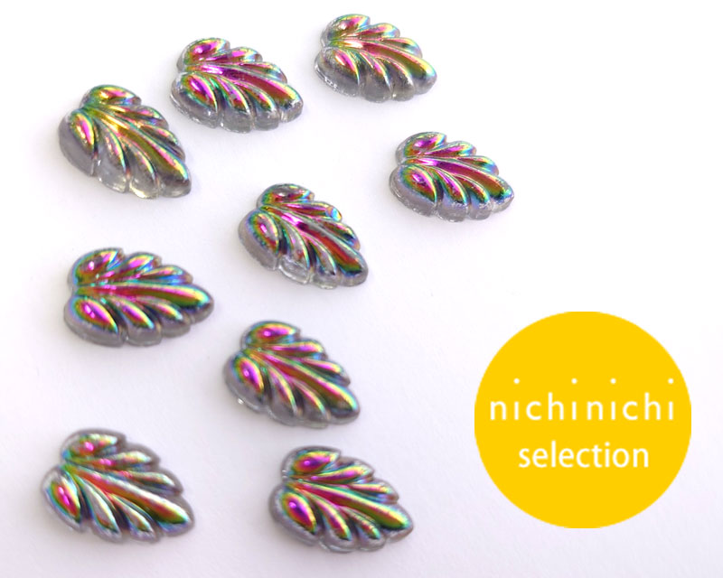 ns348/ヴィンテージ/ガラスカボション/ヴィトレイルリーフ(1個)