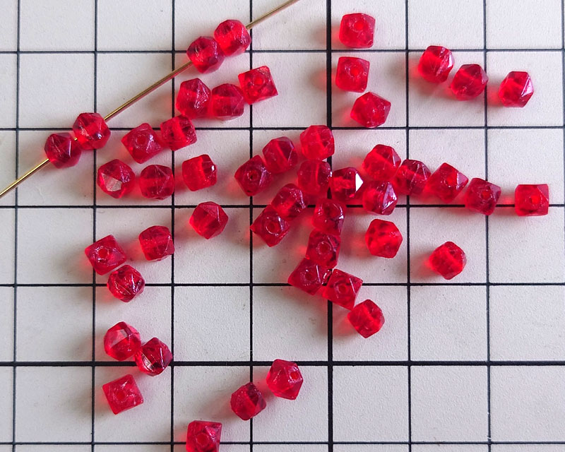 ヴィンテージ/チェコ/イングリッシュカット/レッドミックス/約4mm(10個)