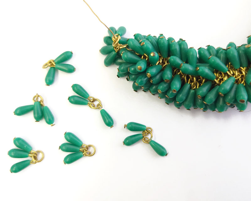ヴィンテージ/日本/プラスチック/グリーンドロップチャーム(2組)