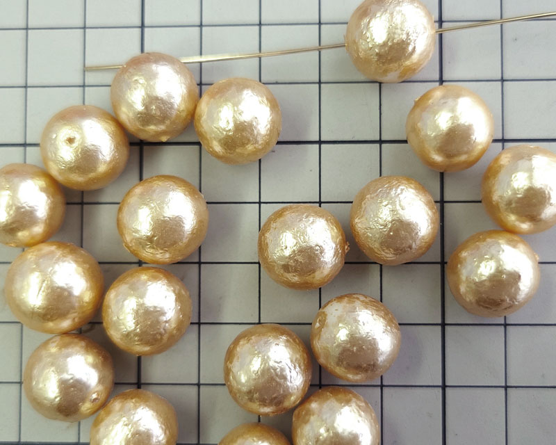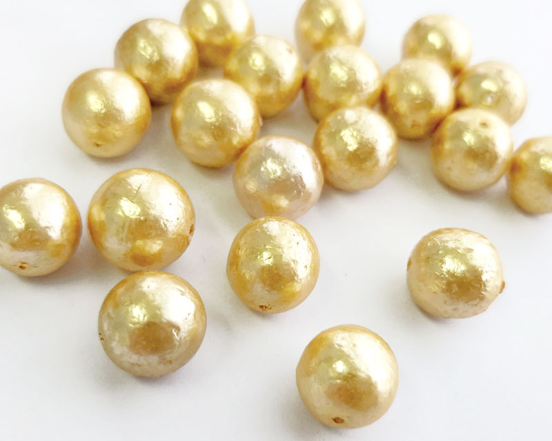 イエローゴールドのような色で、コットンパールのような表面加工です