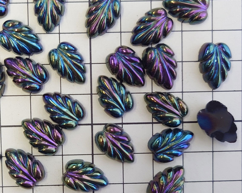 ns348/ヴィンテージ/ドイツ/ガラスカボション/ブラックオーロラリーフ(1個)