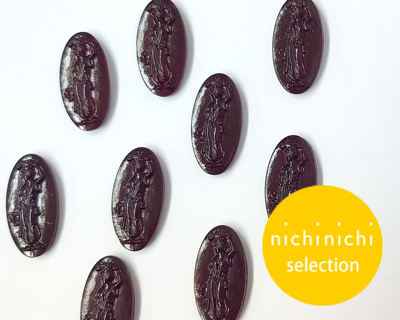 ns330/ヴィンテージ/ドイツ/ガラスカメオ/花輪を持つ女神/ダークレッドブラウン/約20×10mm(1個)