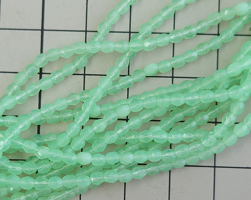 チェコガラスビーズ/ファイアポリッシュラウンド/ミルキーグリーン/約3mm(20個)