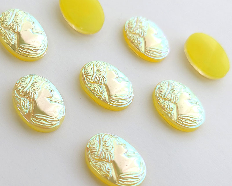 ns334/ヴィンテージ/ドイツ/ガラスカメオ/イエローオーロラ(1個)