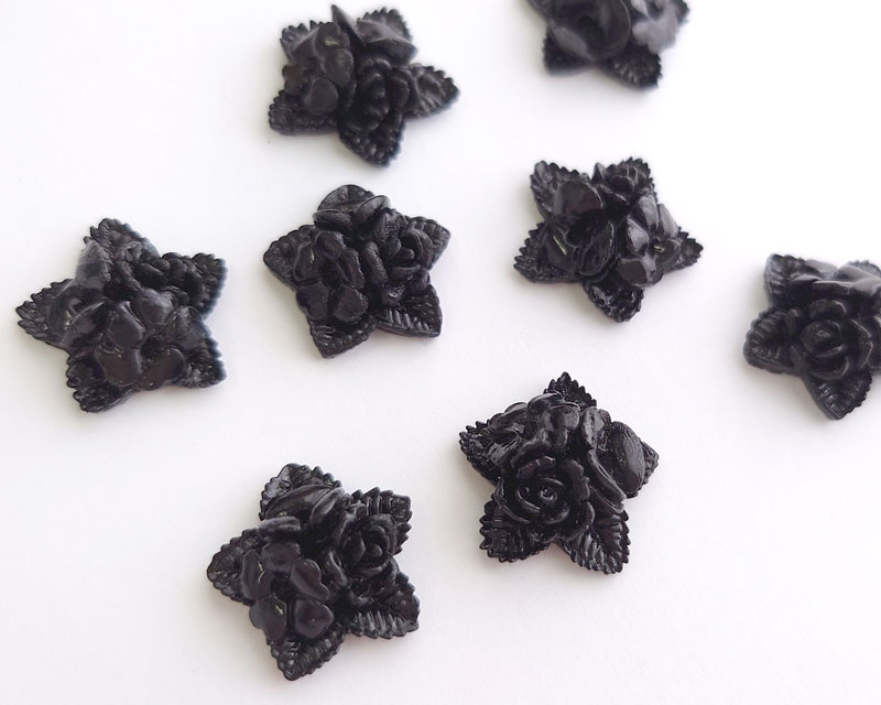 ヴィンテージ/日本/プラスチック/スターフラワー/ブラック/16mm(1個)