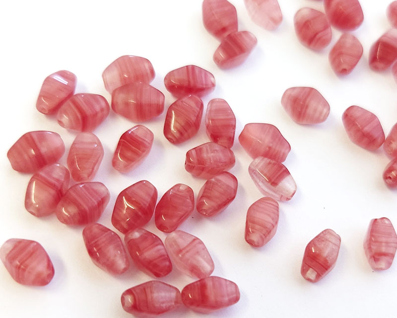 チェコガラスビーズ/ロングバイコン/ローズストライプ/約8×5mm(10個)