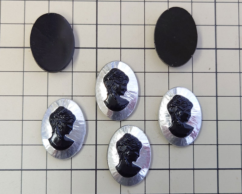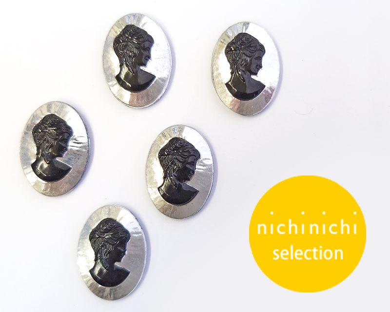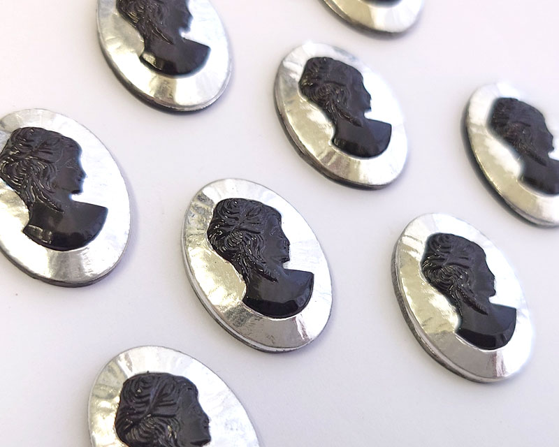 ns364/ヴィンテージ/ドイツ/ガラスカメオ/ブラック×シルバーB/約25×18mm