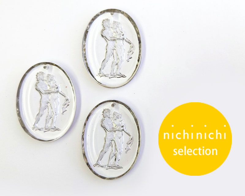 ns366/ヴィンテージ/ドイツ/ガラスインタリオペンダント/アダムとイブ約40×30mm(1個)