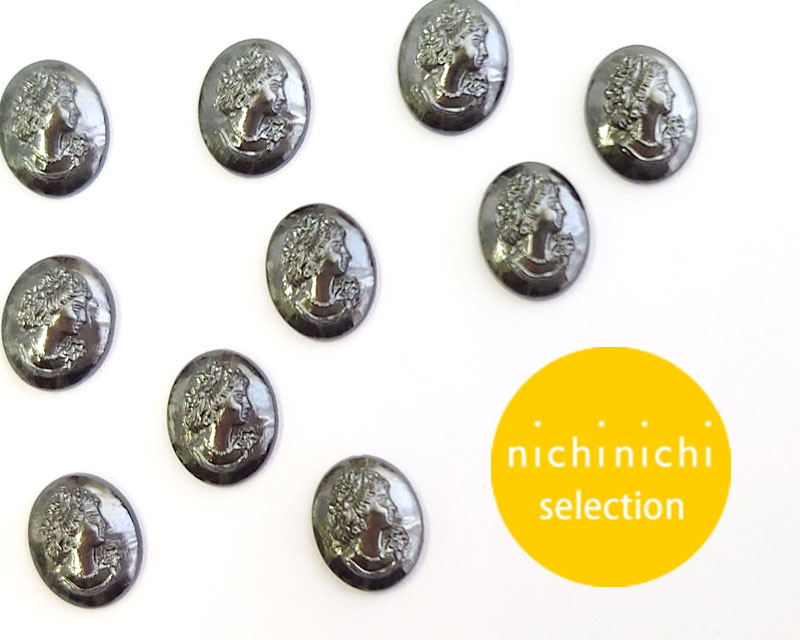 ns368/ヴィンテージ/ドイツ/ガラスカボション/プチサイズ/ヘマタイト(1個)