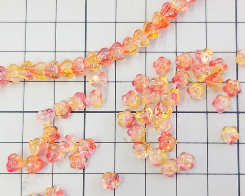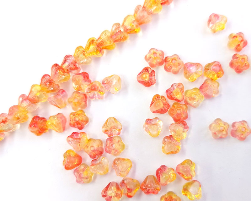 チェコガラスビーズ/ミニベルフラワー/オレンジイエローミックス(10個)