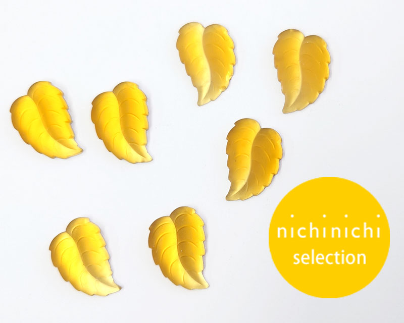 ns326/ヴィンテージ/ガラスカボション/フロストリーフ/イエロー(1個)