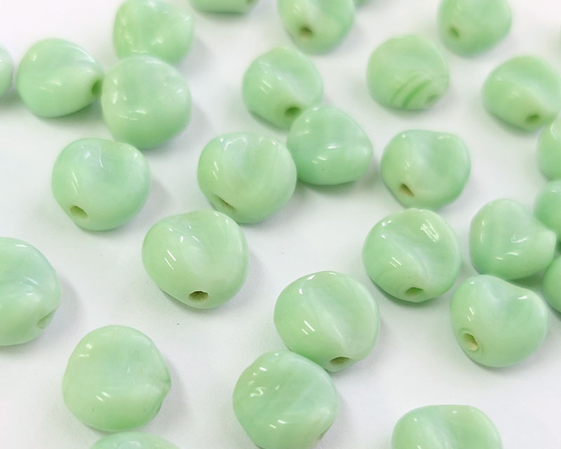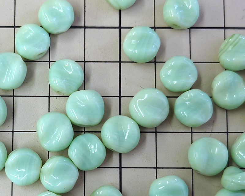 ヴィンテージ/日本/ランプワークビーズ/ライトグリーンストライプ/ひねり(4個)