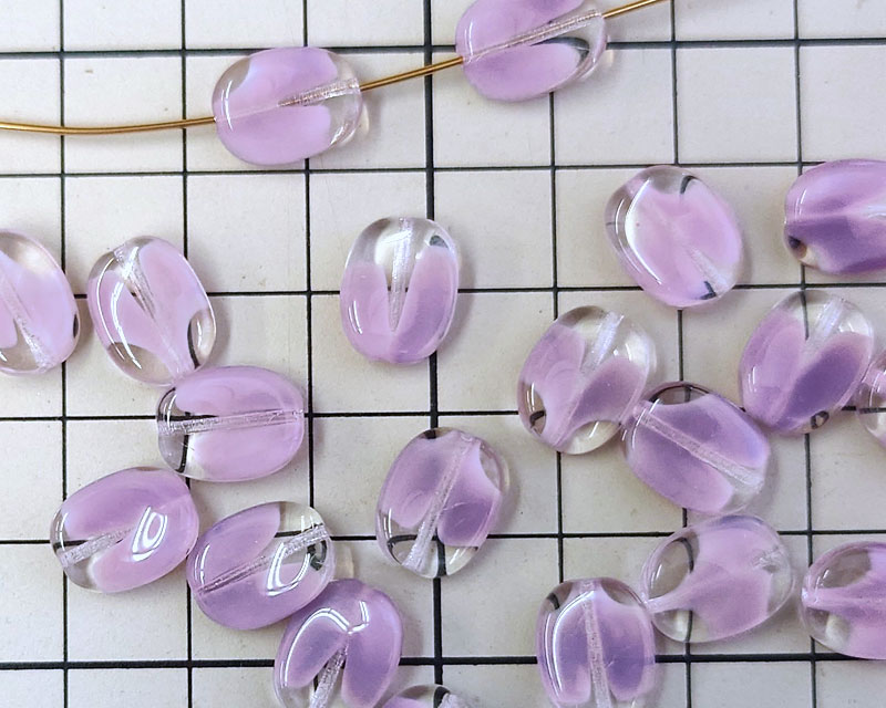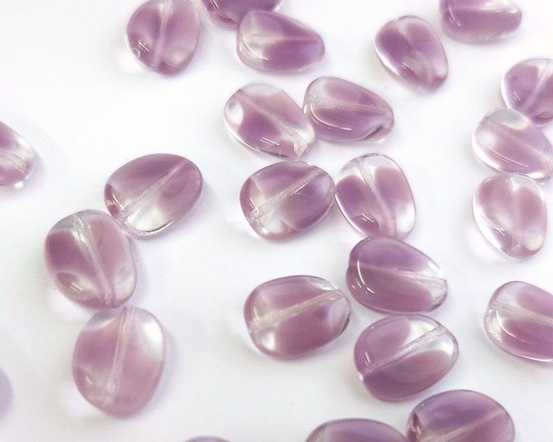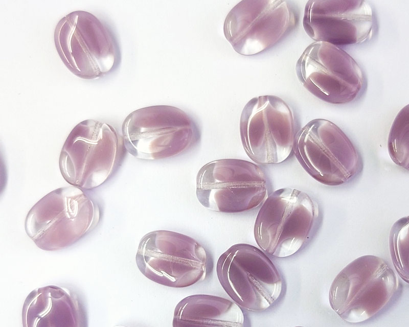 チェコガラスビーズ/ツイスト/クリア×ミルキーパープル/約12×9mm(2個)