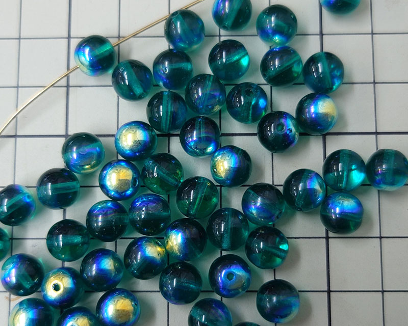 チェコガラスビーズ/ラウンド/エメラルドオーロラ/約8mm(10個)
