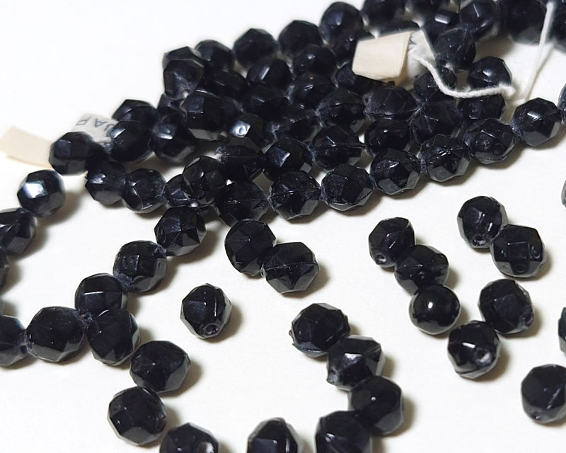 ヴィンテージ/日本/ガラスビーズ/ラフブラック(6個)