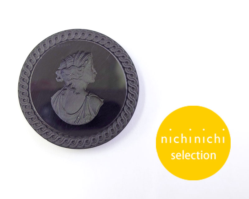 ns373/ヴィンテージ/ドイツ/ガラス/ラウンドレリーフ/ブラック/約35mm