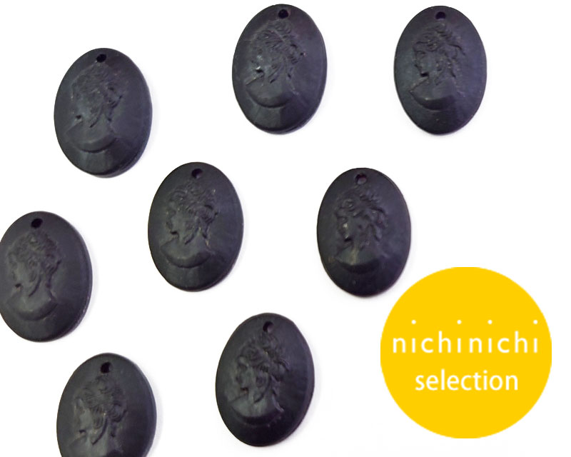 ns375/ヴィンテージ/ドイツ/ガラスカメオペンダント/ブラック/約18×13mm(1個)