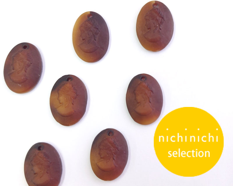ns375/ヴィンテージ/ドイツ/ガラスカメオペンダント/ブラウンマーブル/約18×13mm(1個)