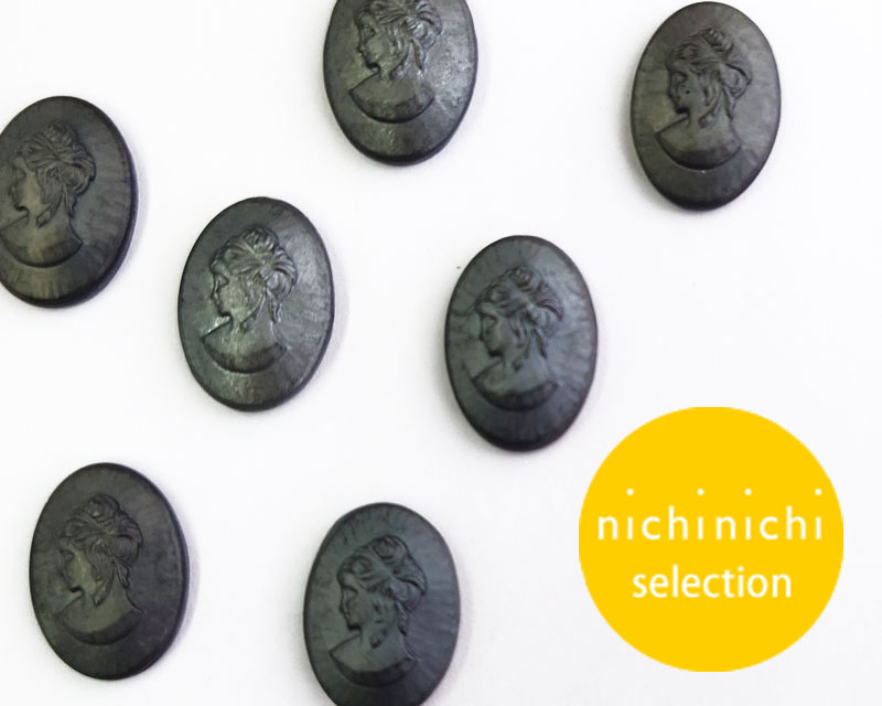 ns377/ヴィンテージ/ドイツ/ガラスカメオ/鈍色/約18×13mm