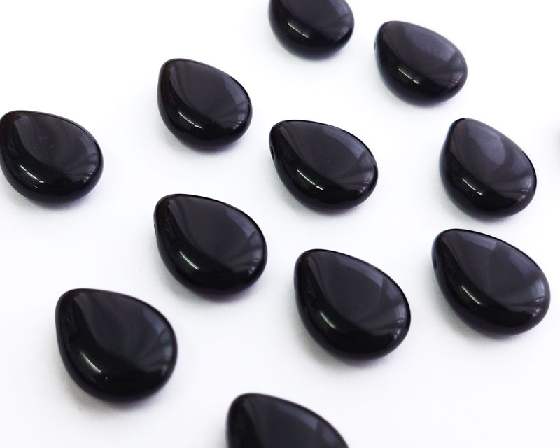 チェコガラスビーズ/横穴ドロップ/オペークブラック/約12×16mm(2個)