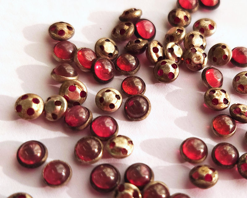ヴィンテージ/チェコ/縫い付け用パーツ/レッドラスター/約5mm(2個)