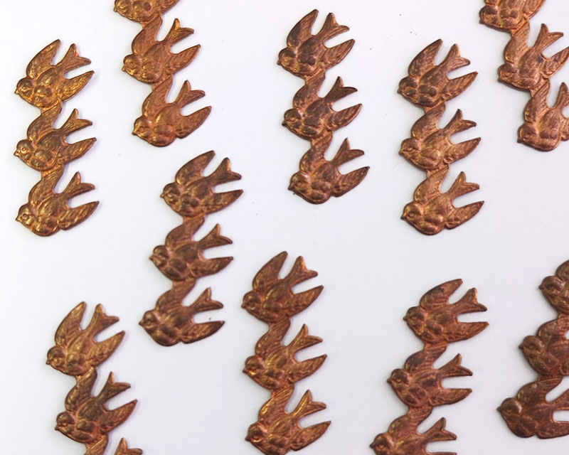 ヴィンテージ/USA/ブラススタンピング/3羽の鳥(1個)