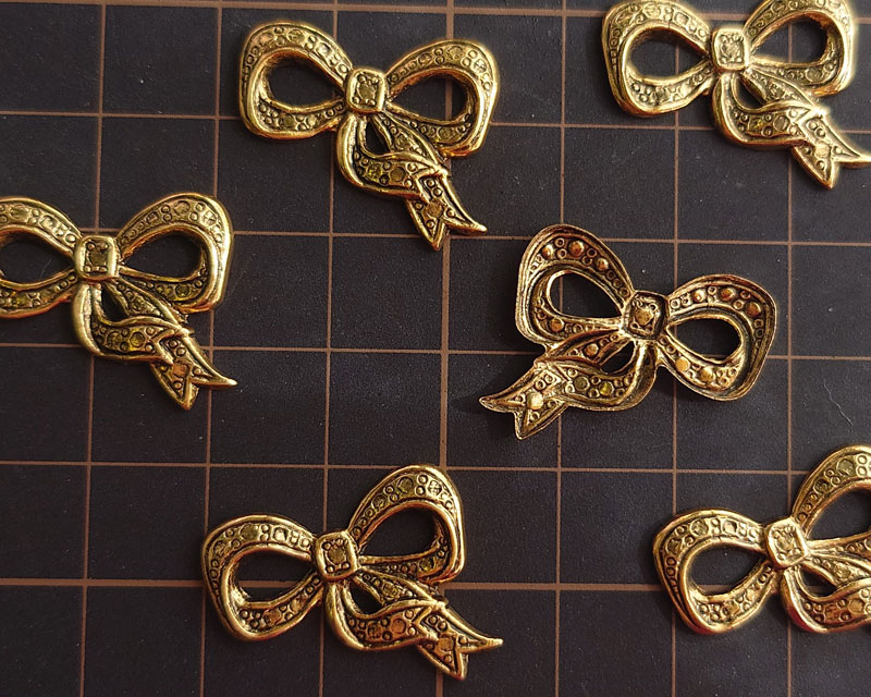 ブラススタンピング/USA/墨入りゴールド/リボン(1個)