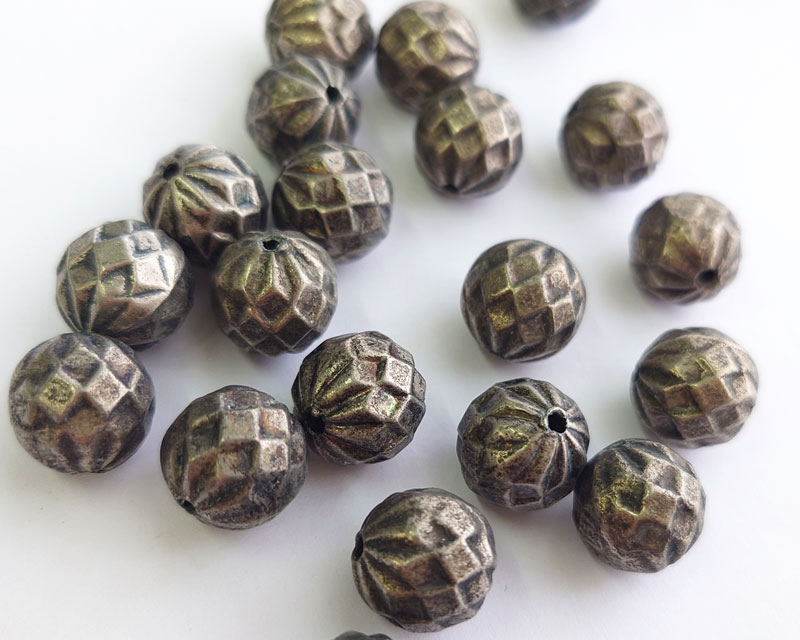 ヴィンテージ/ドイツ/プラスチック/カットラウンド/メタリックダークシルバー/約12mm(1個)