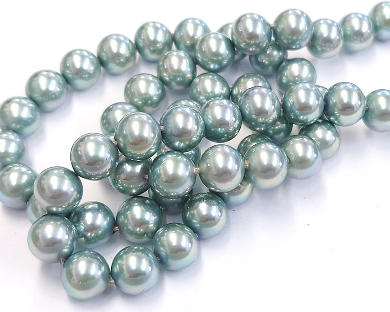 ヴィンテージ/チェコ/ガラスパール/ブルーグリーン/約8mm(4個)