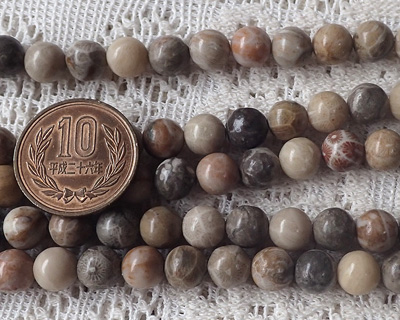 ラウンドビーズ/フォシルコーラル/約8mm(5個)