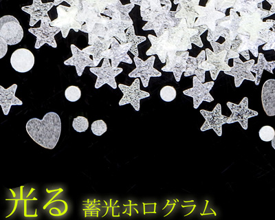 暗所でほんのり光るホログラムです。
