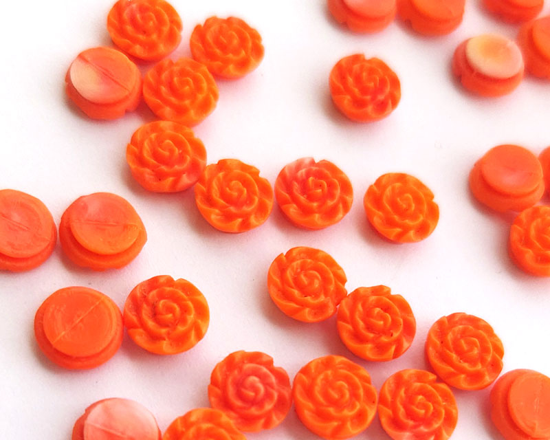 ヴィンテージ/チェコ/ガラスカボション/コーラルローズ/約8mm(1個)