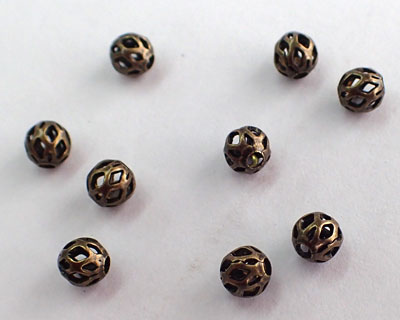 メタルビーズ/透かしラウンド/金古美4mm(10個)