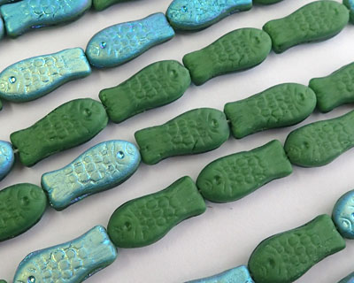 チェコガラスビーズ/さかな/グリーンオーロラ(10個)