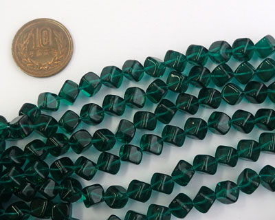 チェコガラスビーズ/ダイアゴナルキューブ/エメラルド/8mm(10個)