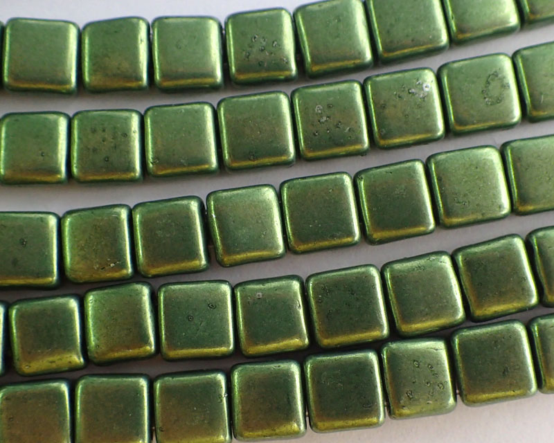 チェコガラスビーズ/2ホールタイル/メタリックグリーン(10個)