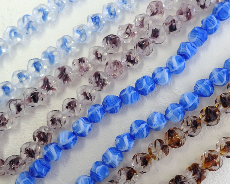 チェコガラスビーズ/ピンチラウンド/クリア×パープル/約11mm(4個)