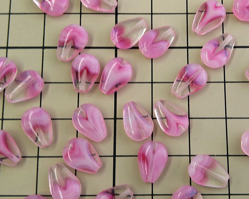 チェコガラスビーズ/ミニフラットドロップ/クリア×ピンク(6個)