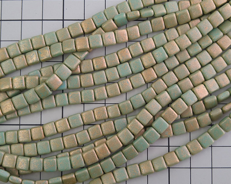 チェコガラスビーズ/2ホールタイル/グリーンアンティークシマー(10個)