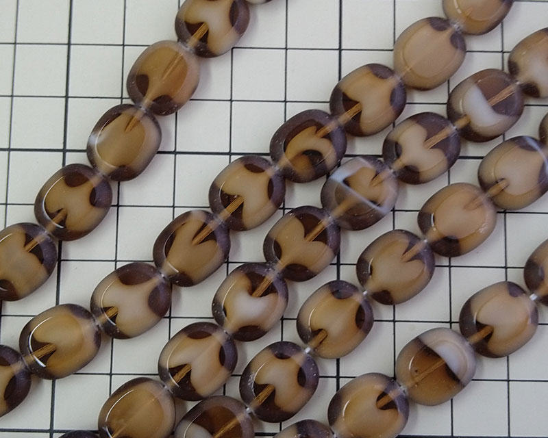 チェコガラスビーズ/ウィンドウオーバル/ブラウン×ホワイト(2個)