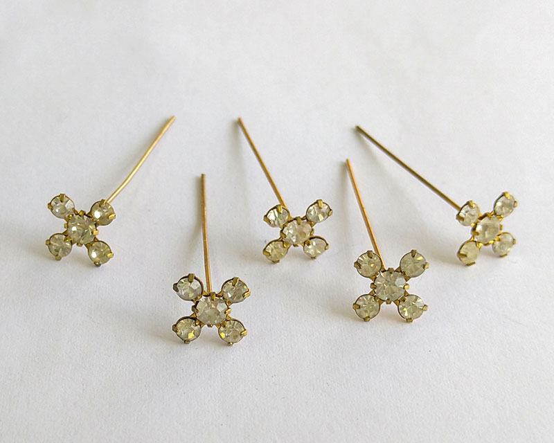 ヴィンテージ/ラインストーンフラワーピン/クリスタル(1個)