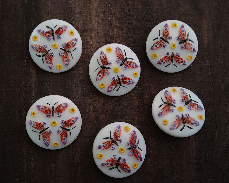 ヴィンテージ/チェコ/ガラスボタン/バタフライ/レッド×パープル/約26mm(1個)